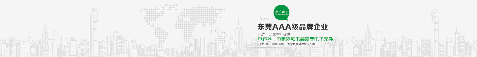 東莞市杰廣電子有限公司是一電子元件之專業(yè)制造廠 ,銷(xiāo)售遍及世界各地,主要產(chǎn)品包括:電容器,電阻器和電感器等電子元件,以供應(yīng)汽車(chē),通訊,電腦,音響,影像,電動(dòng)工具,儀表,以及軍用電子等工業(yè)之電子元件使用。